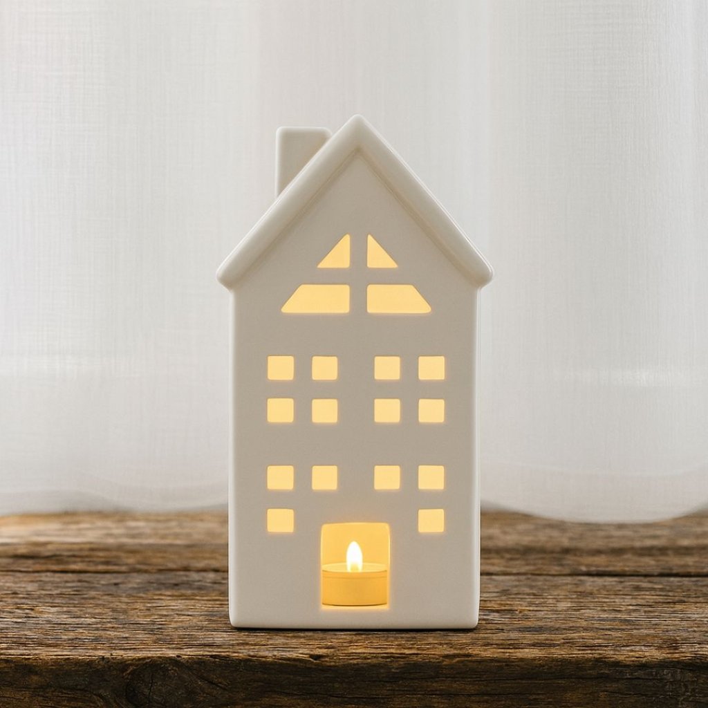 - ✨ Keramický svícen bílý domek Sixi - 17,5 × 7 × 6 cm