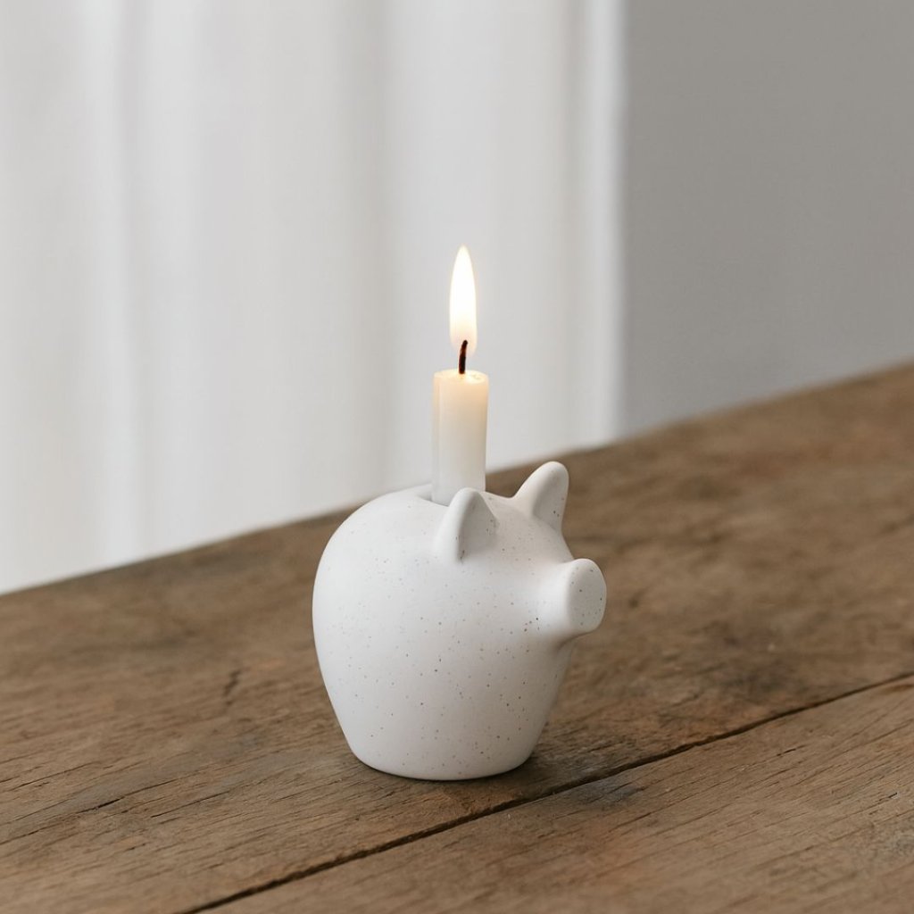 - Tento roztomilý keramický svícen ve tvaru prasátka je tou pravou volbou! Je vyroben z kvalitní keramiky a jeho povrch v bílé melanž barvě působí jemně, přirozeně a elegantně zároveň.