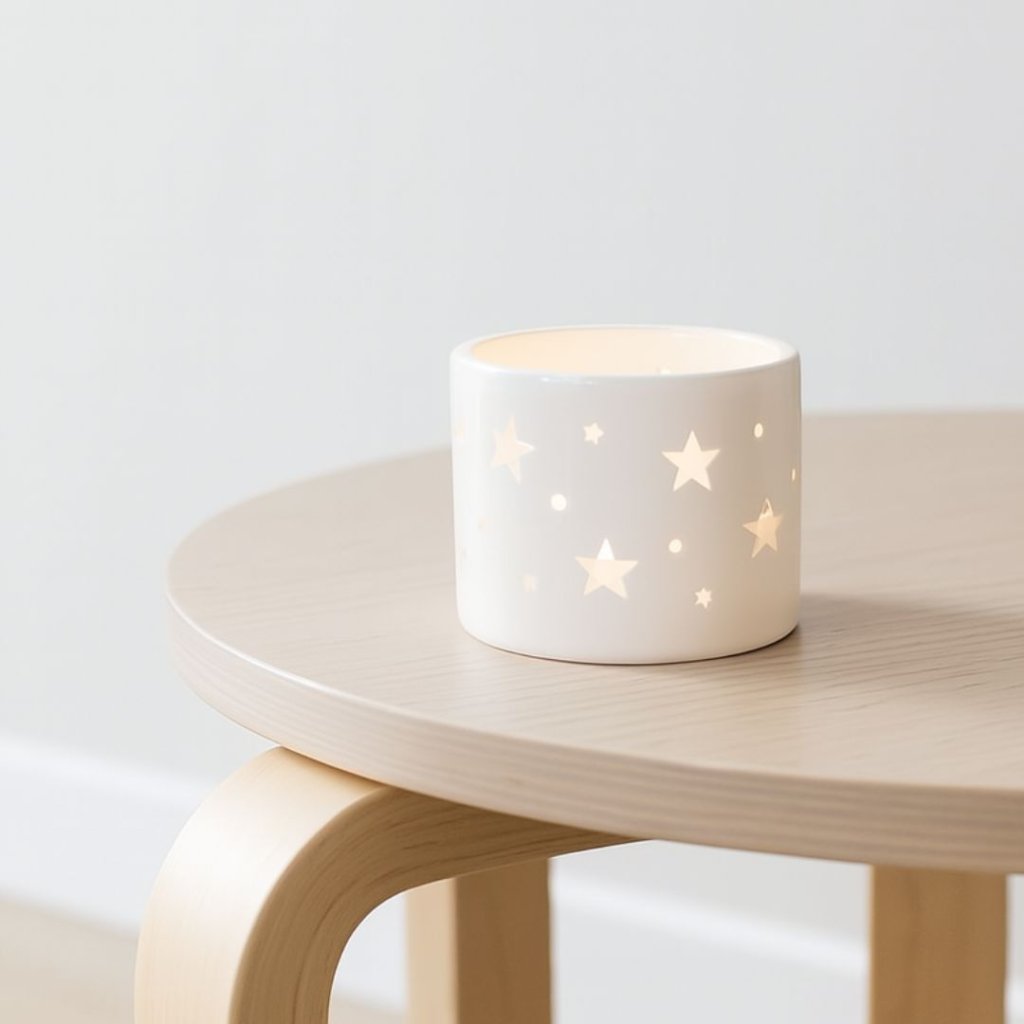- Kouzelný bílý keramický svícen s perforovaným motivem hvězdiček promění světlo svíčky v jemnou a útulnou záři.
