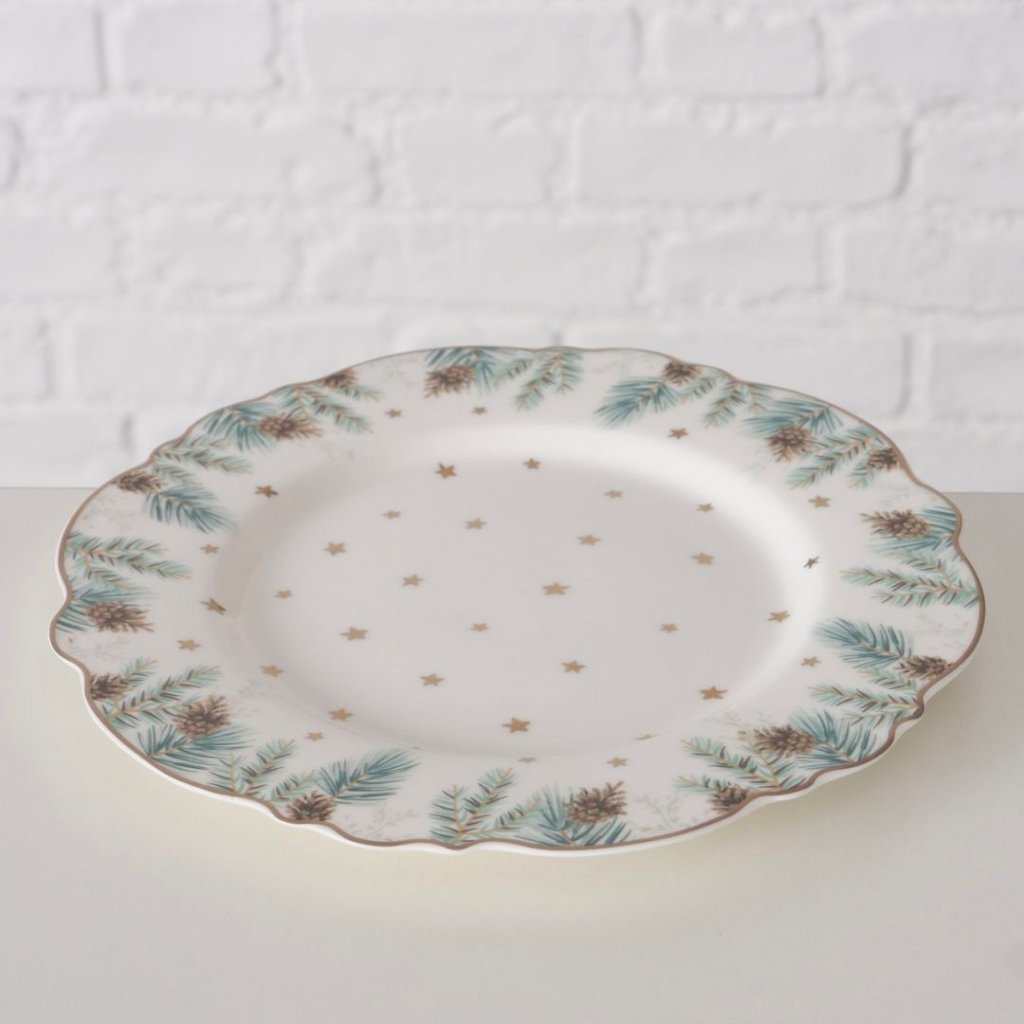 - Keramický talíř se zimním motivem větvičky s šiškami je krásný tradiční doplněk ze kterého si můžete vychutnat svojí oblíbenou sváteční večeři.