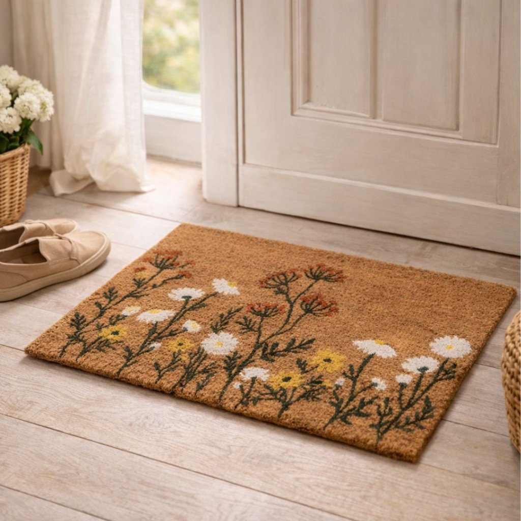 - Naše kokosová rohožka s květinamipřináší styl i praktičnost – je vyrobena z přírodního kokosového vlákna a díky PVC protiskluzové spodní vrstvě zůstane přesně tam, kde má. Rozměr 60 x 40 cm je ideální ke každým dveřím. Hodí se do skandinávského i rustikálního stylu a zpříjemní první krok domů.