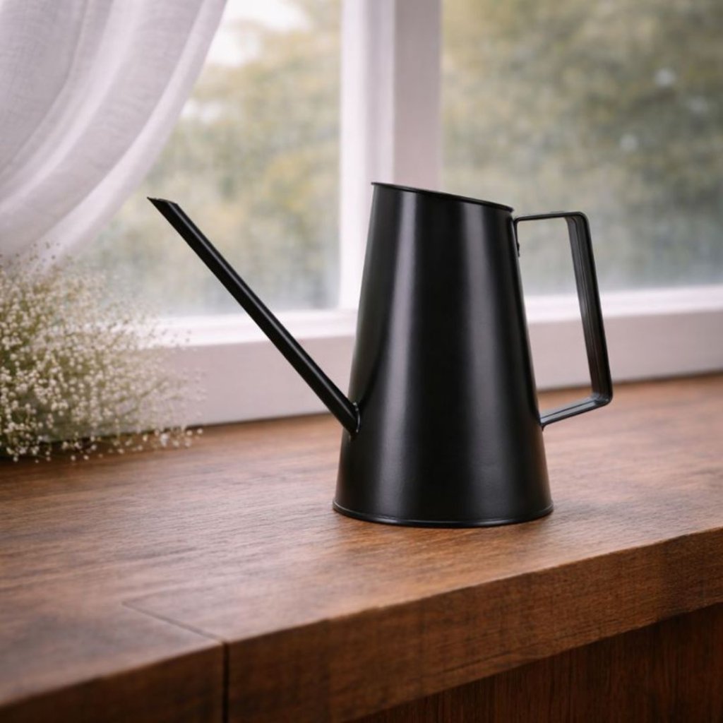 Černá konev Form je praktická a zároveň krásně jednoduchá. Hodí se na zalévání pokojových rostlin, bylinek i menších květin na terase.
