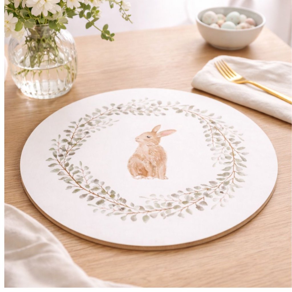 - Korková podložka s motivem zajíčka je jemným detailem, který promění každé stolování v malý sváteční okamžik. Akvarelový věneček z eukalyptu působí lehce a přirozeně, zatímco přírodní korek dodává teplo a autentický charakter.