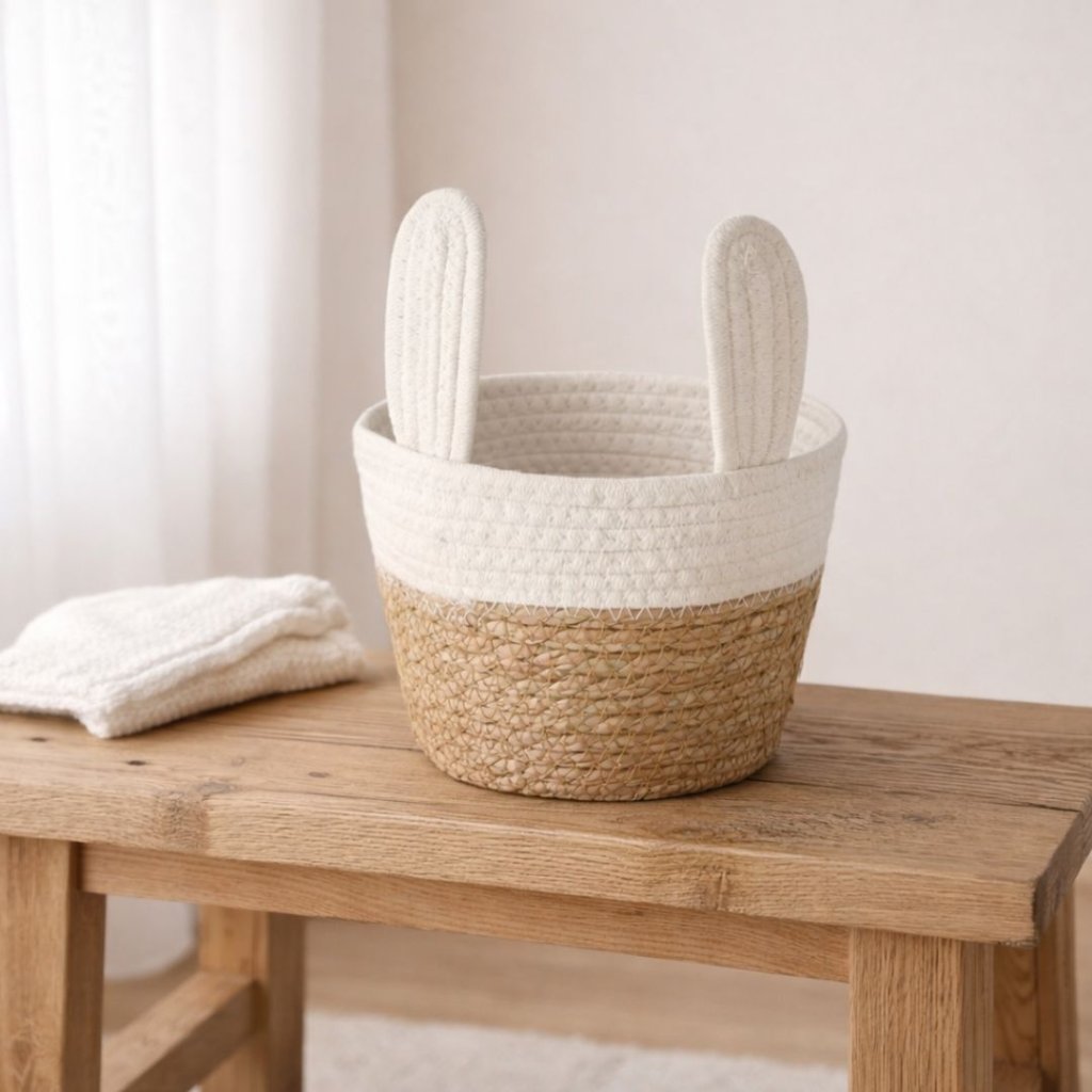 - Košík Nila s roztomilými ušisky je stylovým a hravým doplňkem, který okamžitě upoutá pozornost. Přírodní pletený materiál působí lehce a útulně, díky čemuž se košík hodí do interiéru i jako velikonoční dekorace.