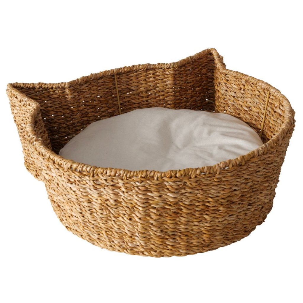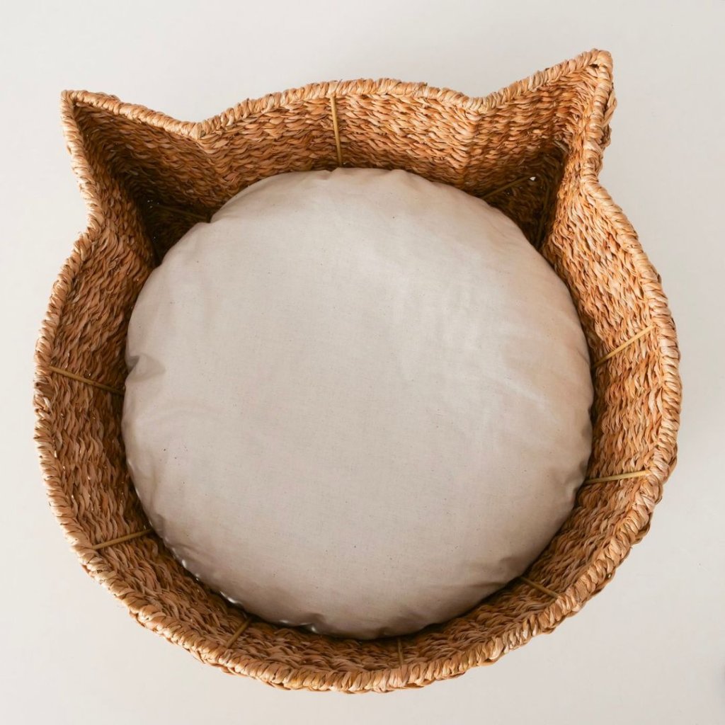 - Tento košík z mořské trávy vytváří pro vaši kočičku pohodlné a stylové útočiště. Jeho jedinečný design ve tvaru kočky přidává do prostoru hravý a dekorativní prvek.