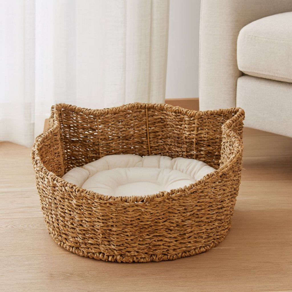 - Košík je vyroben z odolné mořské trávy, což zajišťuje přírodní a bezpečné prostředí pro odpočinek vaší kočky.