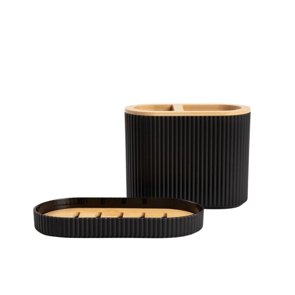 - Jednotný vzhled, jemné linie a přirozená kombinace černého povrchu s dřevěnými detaily promění koupelnu v místo, kde se dobře začíná i končí den. Vše má své místo, nic neruší – jen ticho, světlo a pocit čistoty. Ideální volba pro ty, kdo mají rádi řád, ale zároveň teplo domova.
