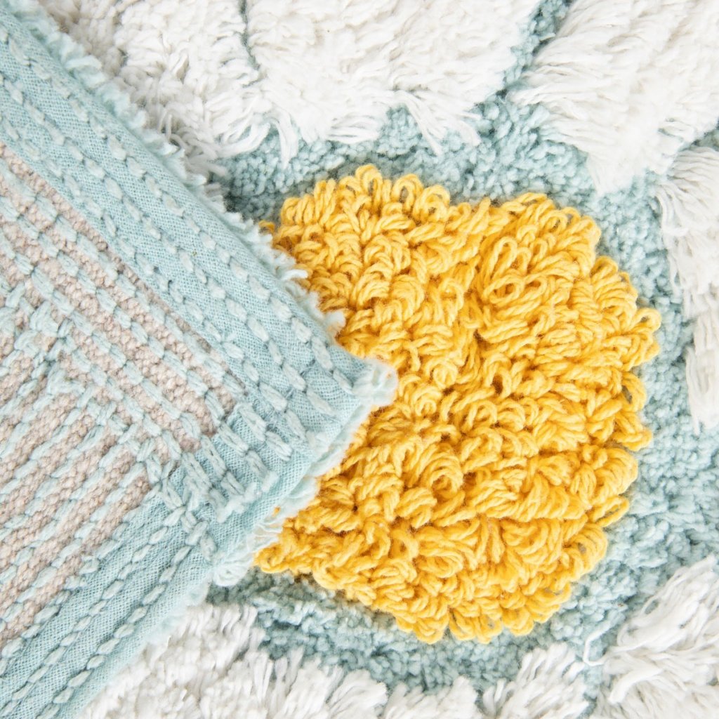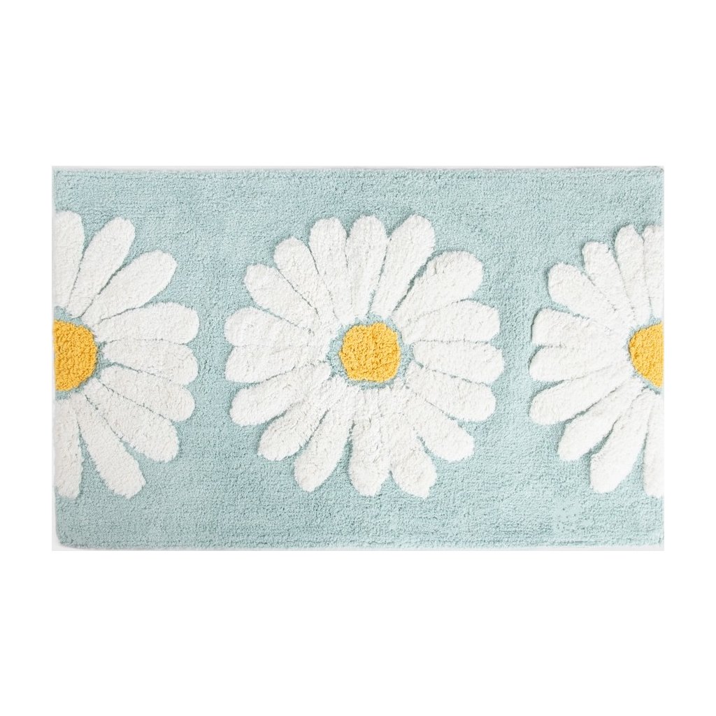 - Vneste do své koupelny dávku radosti s tímto měkkým a hravým koberečkem s motivem bílých kopretin na světle modrém podkladu.