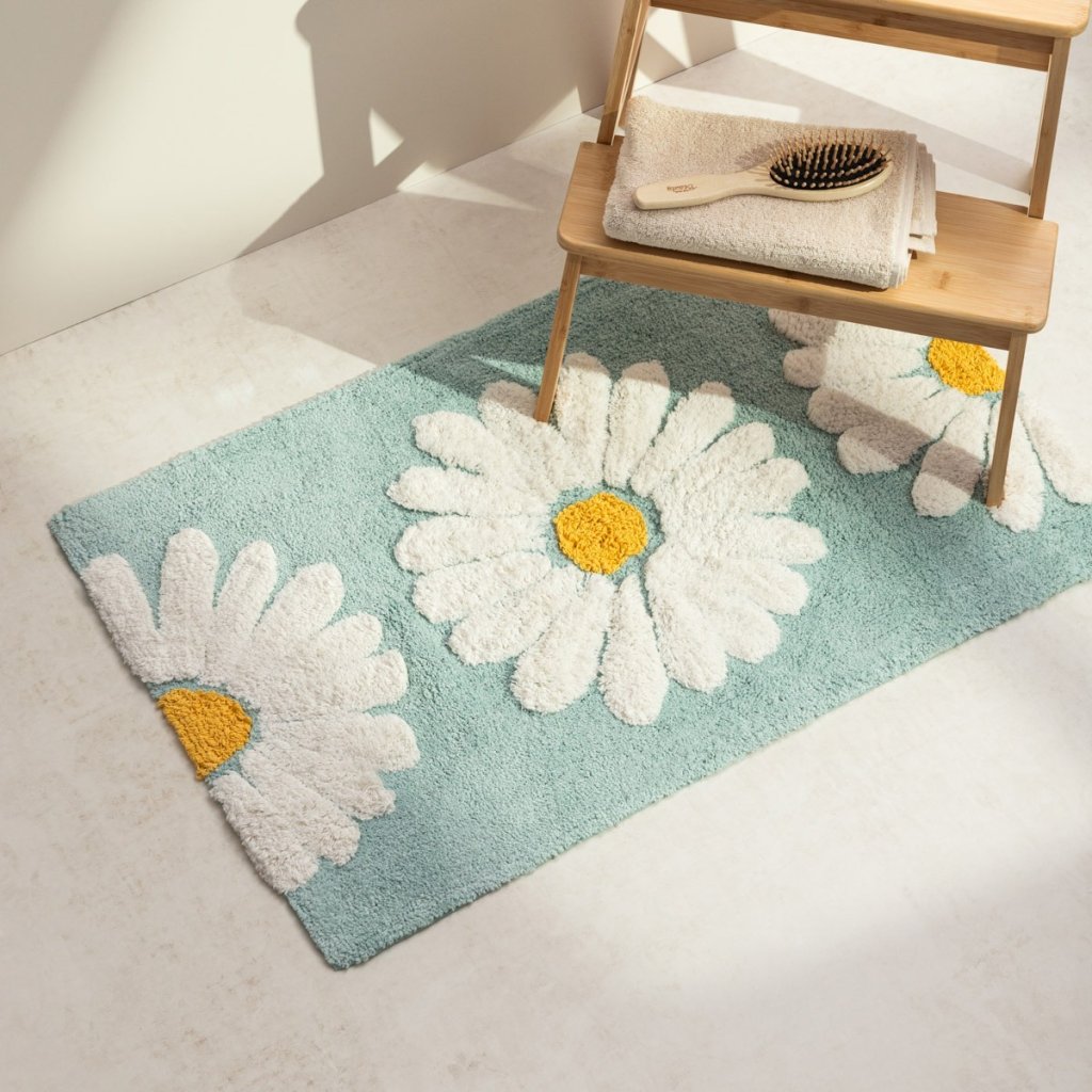 - Koupelnový kobereček s motivem kopretin – svěží design pro každý den