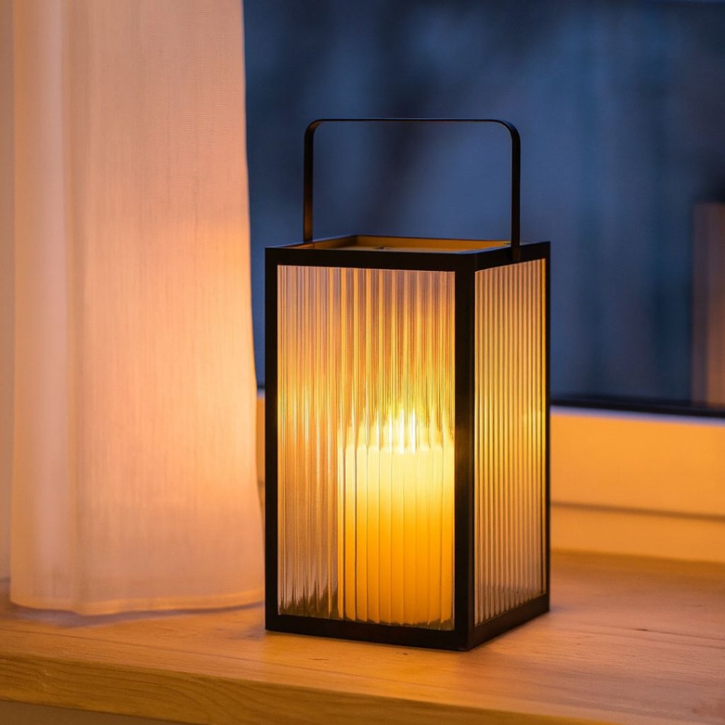 - Minimalistická krása, která zútulní každý kout. Naše kovová lucerna s jemně rýhovaným sklem vdechne vašemu domovu klidnou atmosféru a teplé světlo. Umístěte ji na parapet, stůl nebo terasu a nechte ji tiše zářit při večerním odpočinku.
