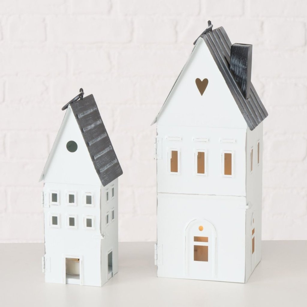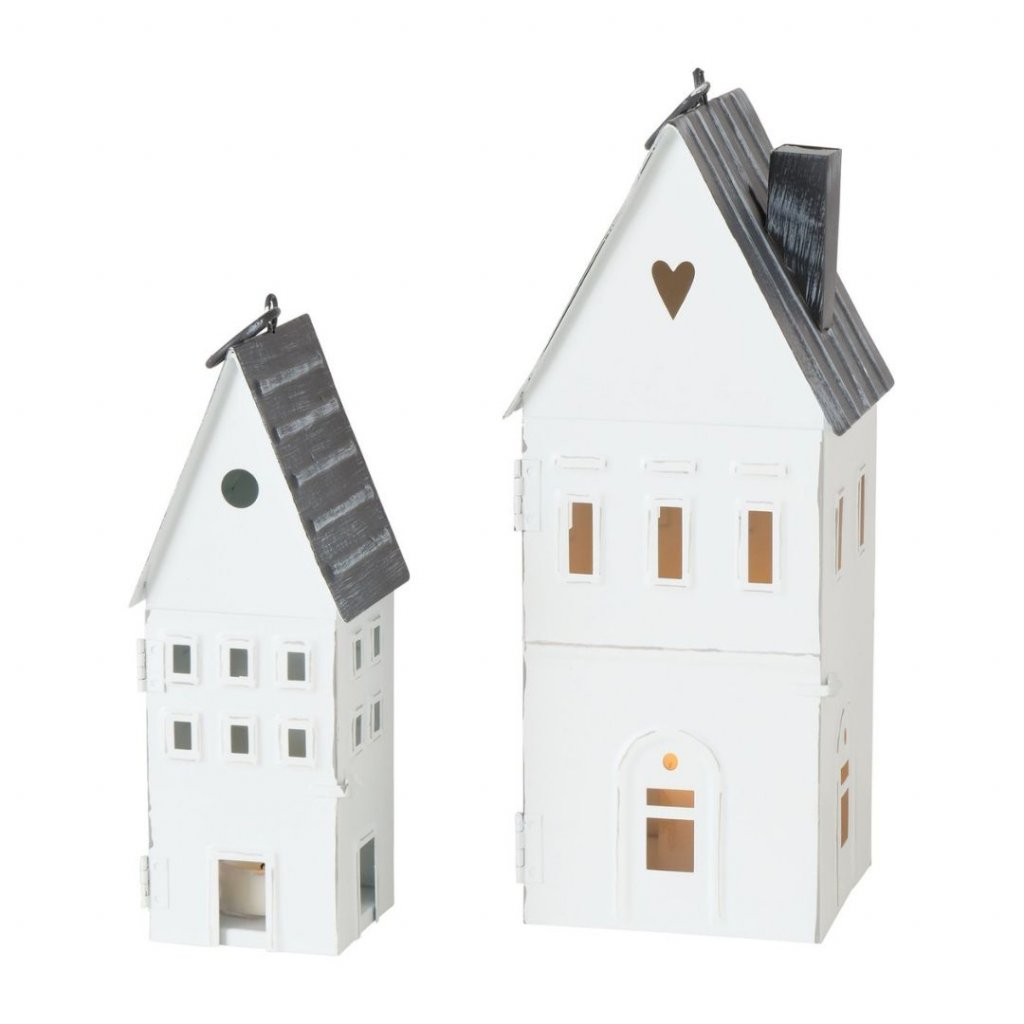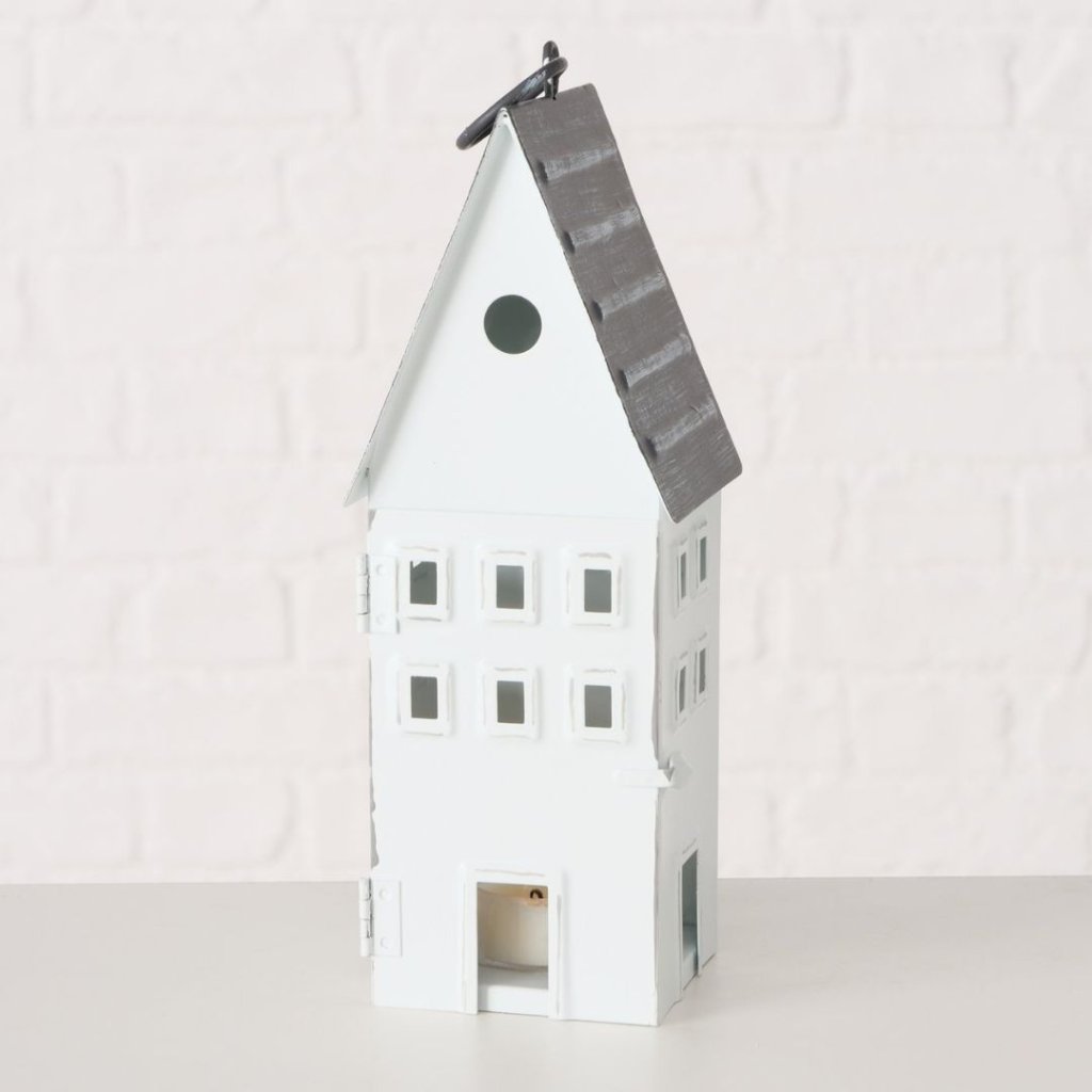- Kovový lucerna domek Relino v bílé barvě na led nebo válcovou svíčku.