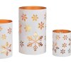 Krásný kovový svícen bílý v sadě 3 kusy na čajovou a led svíčku s vločkou v kombinaci uvnitř zlaté barvy si jistě najde místečko ve vašem krásném domově.