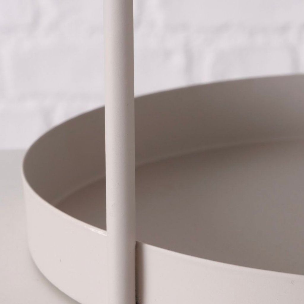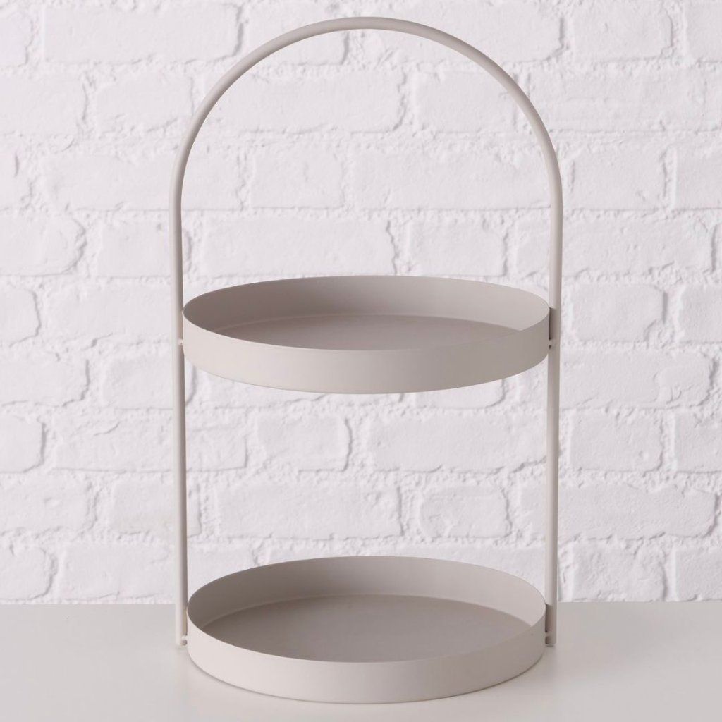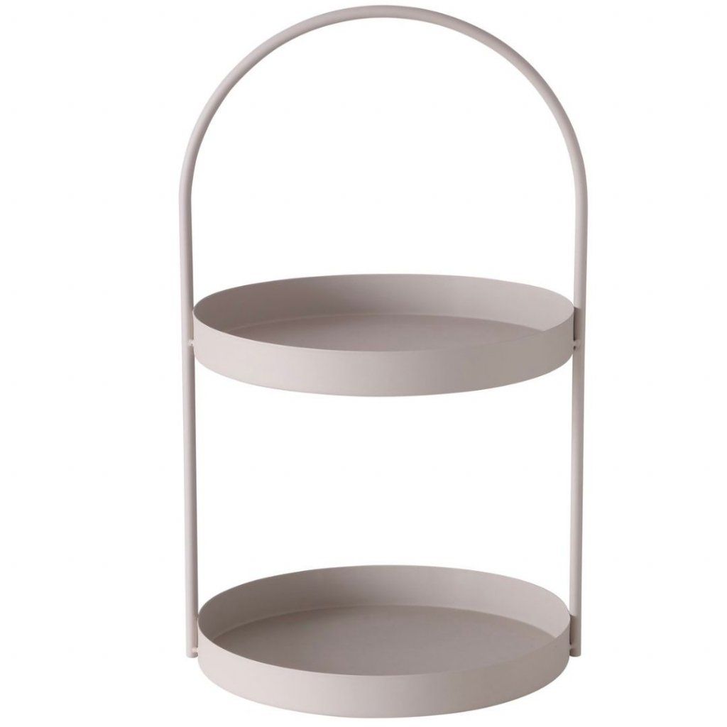 - Minimalistický kovový etažér v béžové barvě bude nejen dokonalou ozdobou prostřeného stolu, ale najde využití třeba i na kuchyňské lince, kde na něj můžete odkládat vaše nejoblíbenější hrnky a budete je tak vždy mít po ruce.