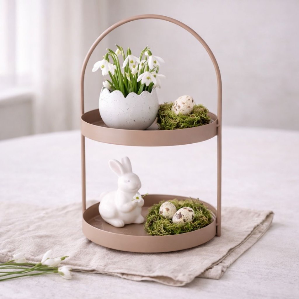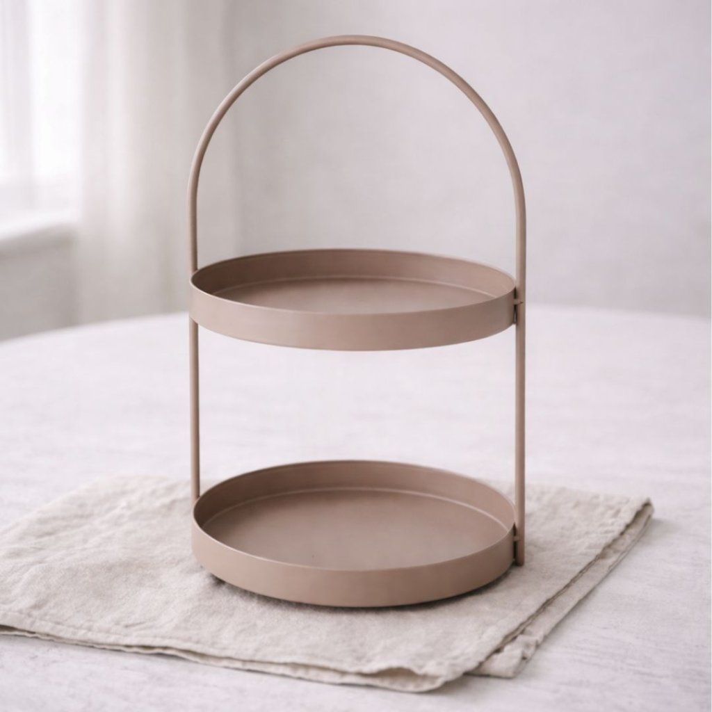 Dvě patra pro malé dekorace, svíčky nebo ovoce, praktické madlo pro snadné přenášení. Čistý tvar, který zapadne kamkoliv a nepřebíjí prostor. -