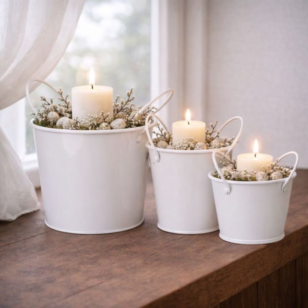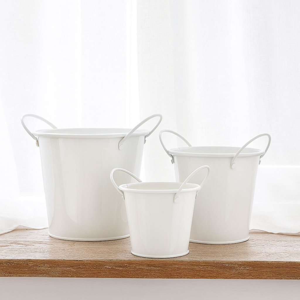 - Bílý kovový obal Arlina v sadě po 3 kusech s rukojetí na přenos je stylovým a praktickým doplňkem pro váš domov.