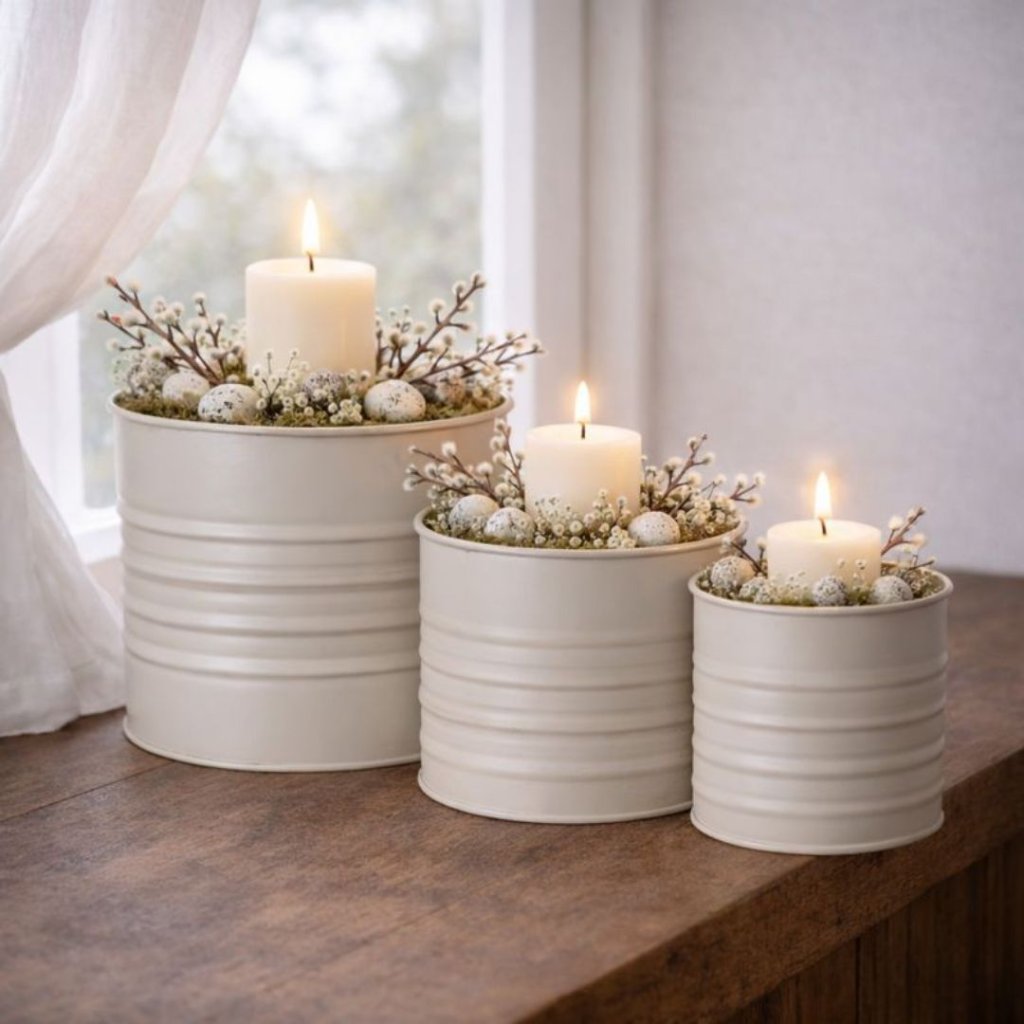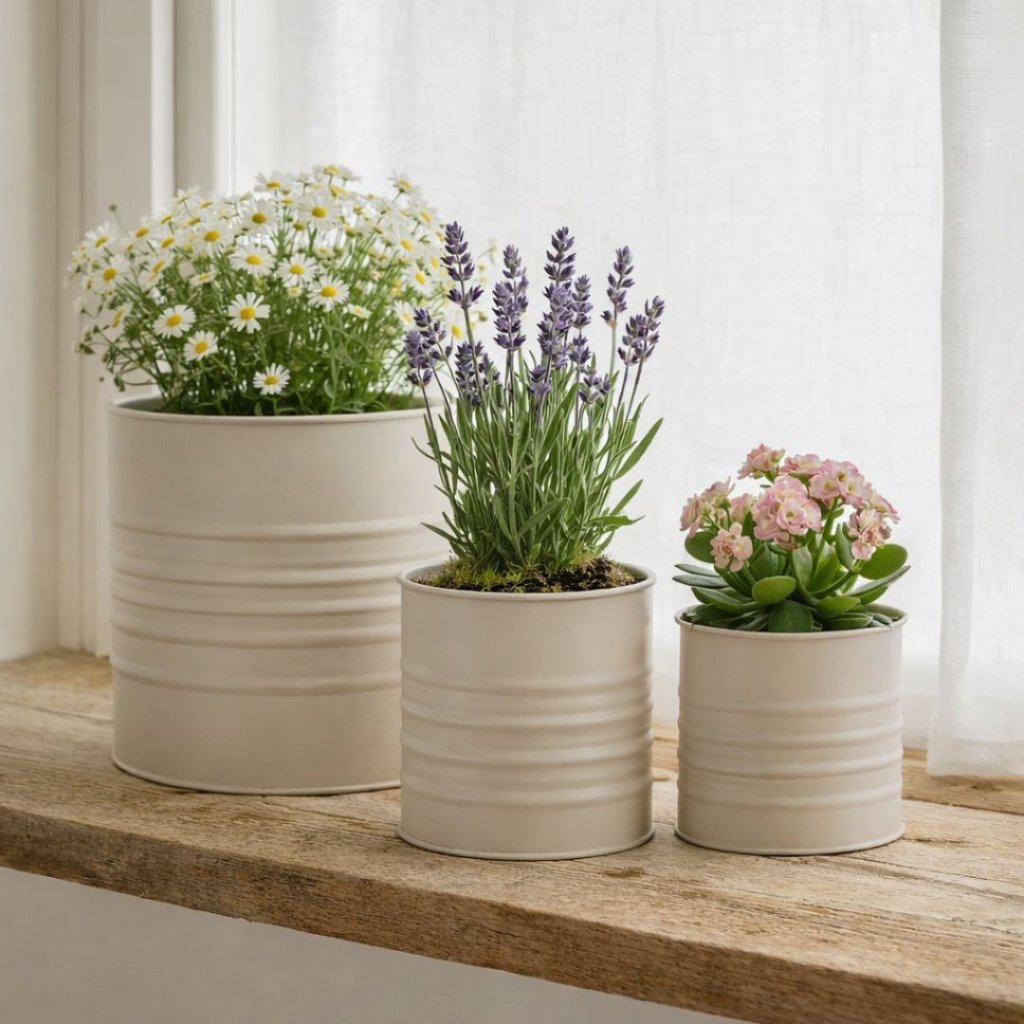 - Kovové květináče – matná béžová (sada 3 ks)