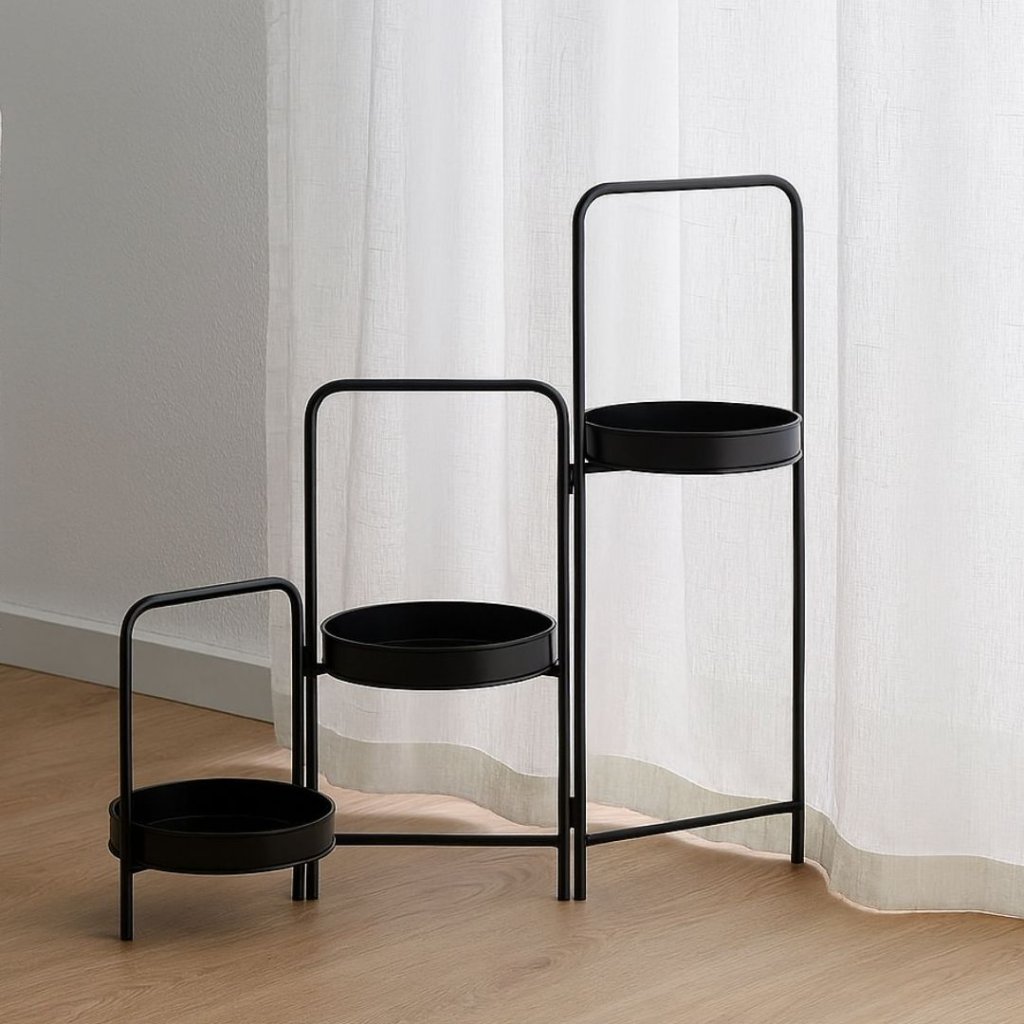 - Tento kovový černý stojan na květiny je praktickým a vkusným doplňkem pro každý domov, který přináší do prostoru špetku moderní elegance.
