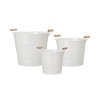 - Bílý kovový obal Ariela s dřevěnou rukojetí na přenos je stylovým a praktickým doplňkem pro váš domov.