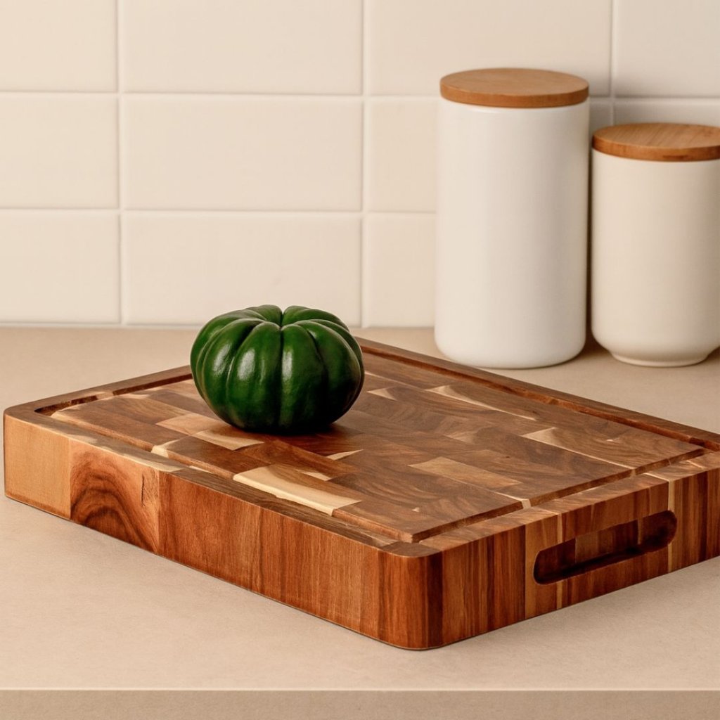 - Krájecí blok z akáciového dřeva, který spojuje krásu přírody s praktičností. Robustní provedení a přirozená kresba dřeva dělají z každého kusu originál. Díky drážce na odšťavňování zůstává vaše kuchyň čistá a vestavěné rukojeti po stranách umožňují snadnou manipulaci. Perfektní pro každodenní vaření i stylové servírování.