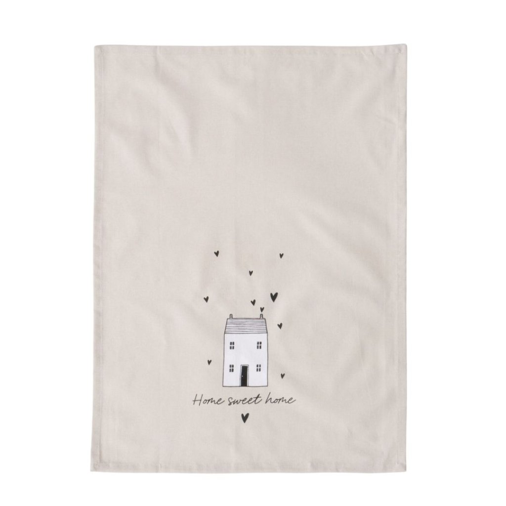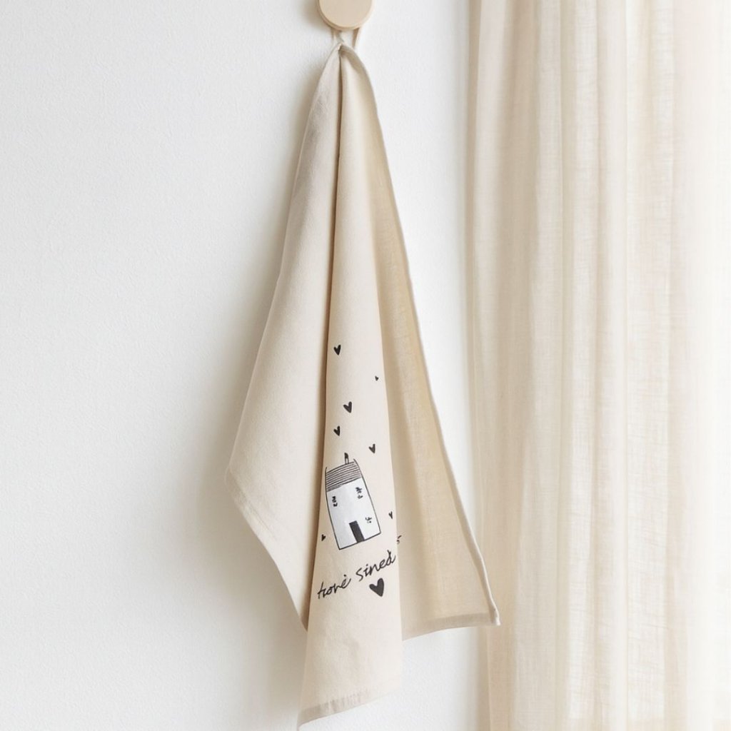 - Domov je tam, kde je teplo, vůně dobrého jídla a láska ve vzduchu. Tahle světle šedá kuchyňská utěrka s roztomilým motivem domečku a srdíček vám připomene, že štěstí je domácí. Je ušitá z příjemného materiálu, který dobře saje, a díky svému jemnému designu se stane nejen praktickým, ale i dekorativním doplňkem vaší kuchyně.