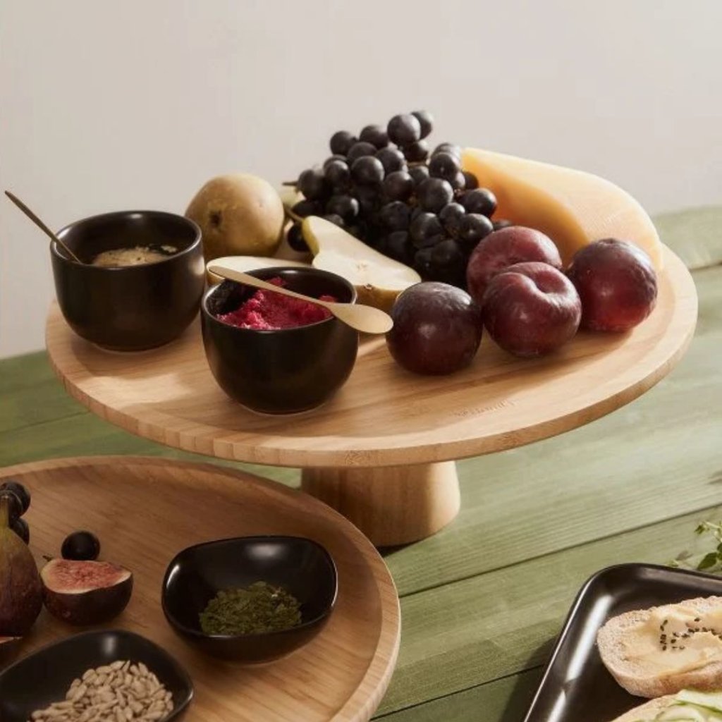 - Podnos BAMBOU je ideální pro servírování různých lahůdek, můžete na něj umístit koláče, sýry, uzeniny nebo ovoce. Díky tomu, že je umístěn na vysoké noze, snadno se vejde i na silně zatížený stůl a každý bude mít snadný přístup k produktům na něm.