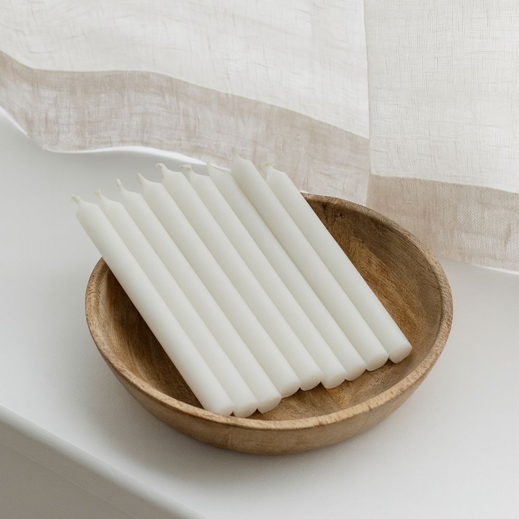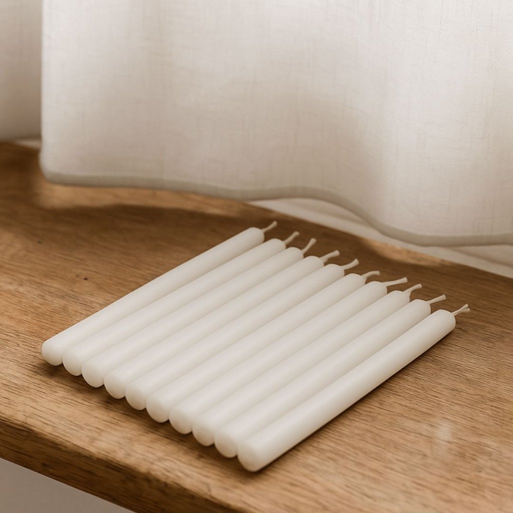 - Sada 10 bílých svíček – jednoduchost, která zahřeje - 1,2 × 15 cm