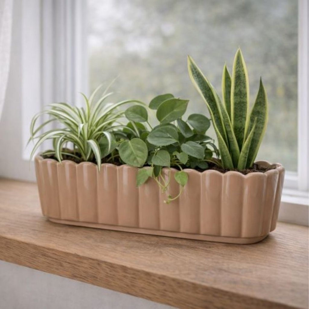 - Je ideální na parapet, komodu nebo stůl, kde vytvoří místo pro domácí květiny, bylinky nebo drobnou sezónní výsadbu. Nepoutá pozornost k sobě, ale k tomu, co v něm roste – a přesně v tom je jeho kouzlo.