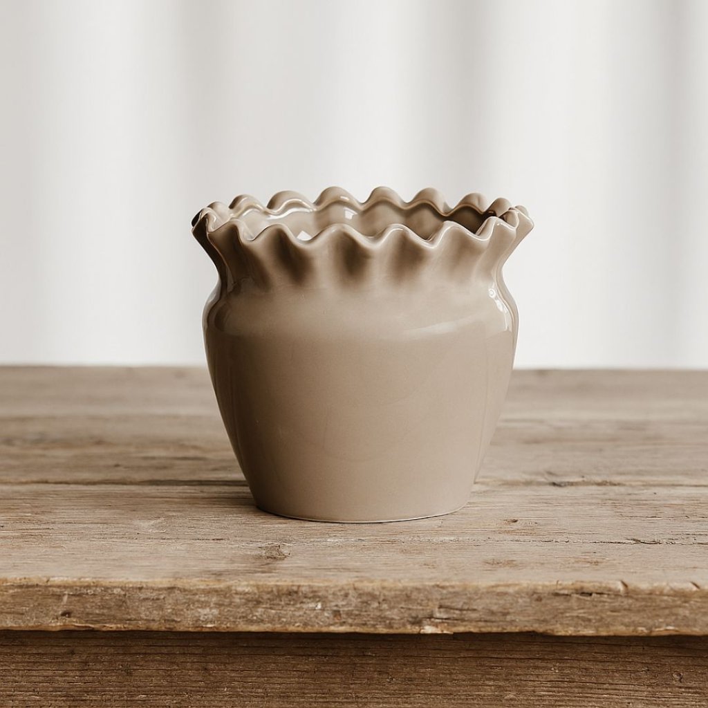 - Tento nádherný béžový květináč působí na první pohled jemně a elegantně.