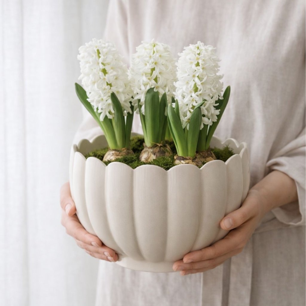 - Bílý květináč s jemným tvarem