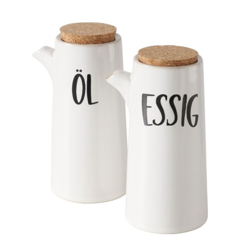 - Jednoduchá, poctivá a krásná na pohled. Sada lahví na olej a ocet v jemné béžovo-smetanové barvě přinese do kuchyně klid a řád. Díky reaktivní lesklé glazuře je každý kousek lehce originální a působí přirozeně, ne strojeně.