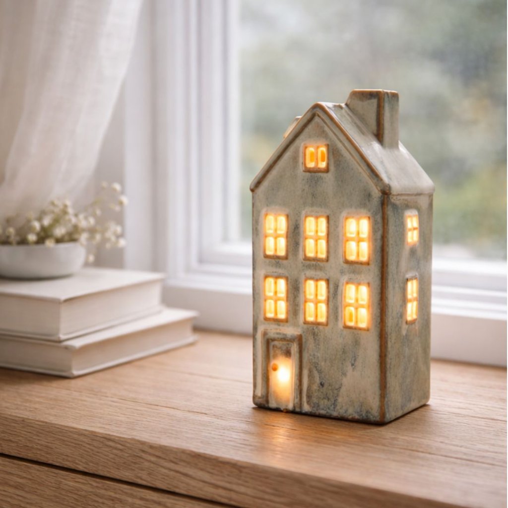 Porcelánový domek Lupan vytváří jemné, teplé světlo, které promění obyčejný okamžik v tichou chvíli pro sebe. - Drobné průzory ve tvaru oken nechávají světlo nenápadně prosvítat ven a dodávají prostoru pocit domova a bezpečí. Lupan se krásně vyjímá na parapetu, poličce i nočním stolku – tam, kde chcete zpomalit a být chvíli v klidu.