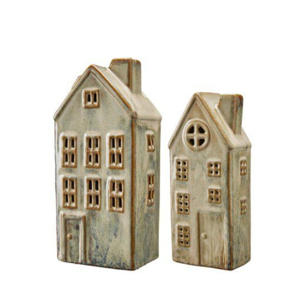 - LED porcelánový domek Lupan -10 x 7 x 21cm| světle bílá melanž