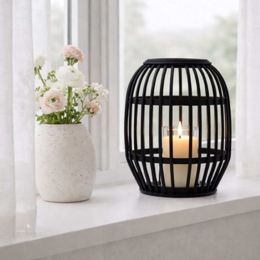 Bambusová lucerna - Černá bambusová lucerna, která v tichu večera pracuje se světlem.