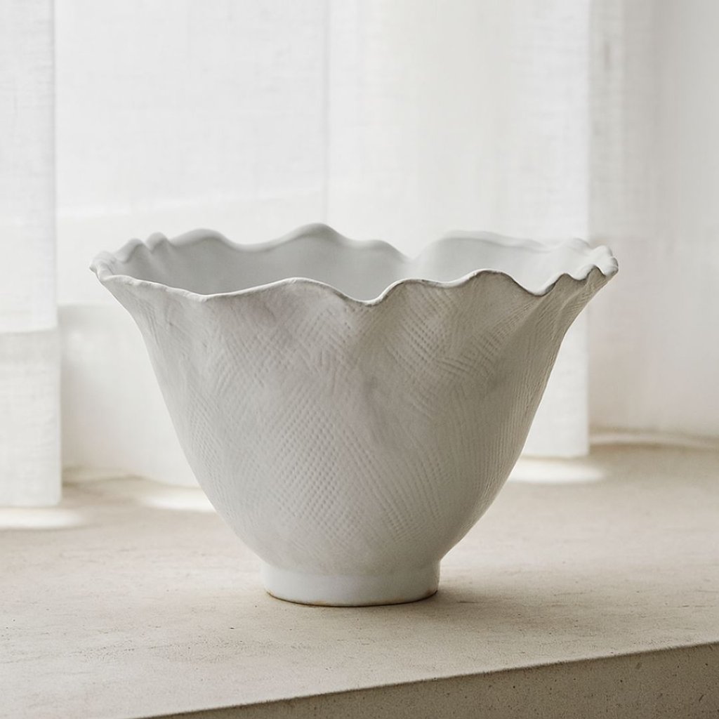 Díky svému univerzálnímu designu může být tato mísa využita různými způsoby. Může sloužit jako stylový květináč nebo obal na květiny, její neutrální barva umožňuje vyniknout zeleným rostlinám či kvetoucím dekoracím a zároveň dodá interiéru nádech elegance.