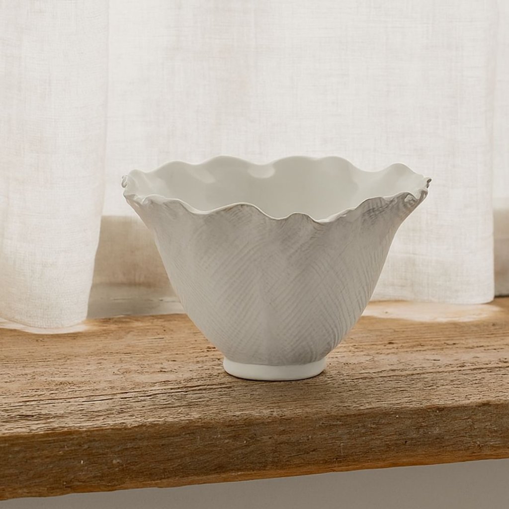 Povrch misky je ozvláštněn jemnou texturou, která jí propůjčuje rustikální a ručně vyráběný vzhled, přesto si zachovává moderní estetiku.