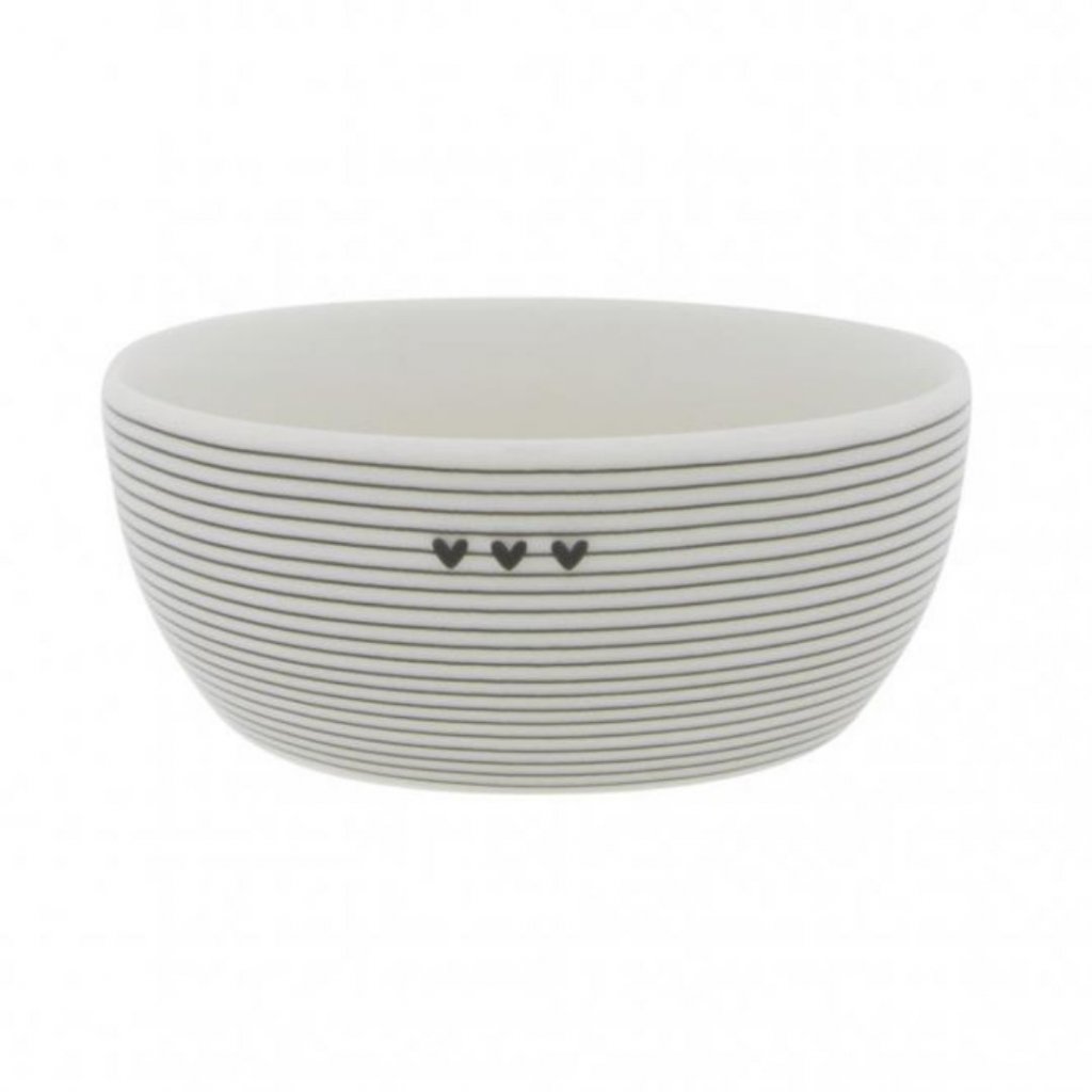 Keramická miska s proužkem značka Bastiion Collections 200 ml.Jemné černé proužky s třemi srdíčky zdobí bílý základ misky.Další krásný doplněk do vaší kuchyňky od této značky Bastion Collections.