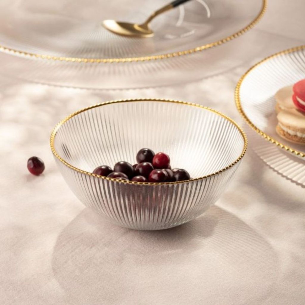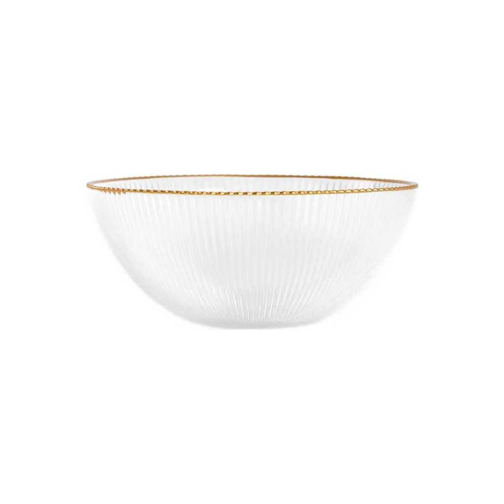 - Zdůrazněte eleganci svého stolu s velkou mísou LYNN. Jeho decentní žebrovaný vzor a zlatý okraj dodají každému pokrmu jedinečný styl.