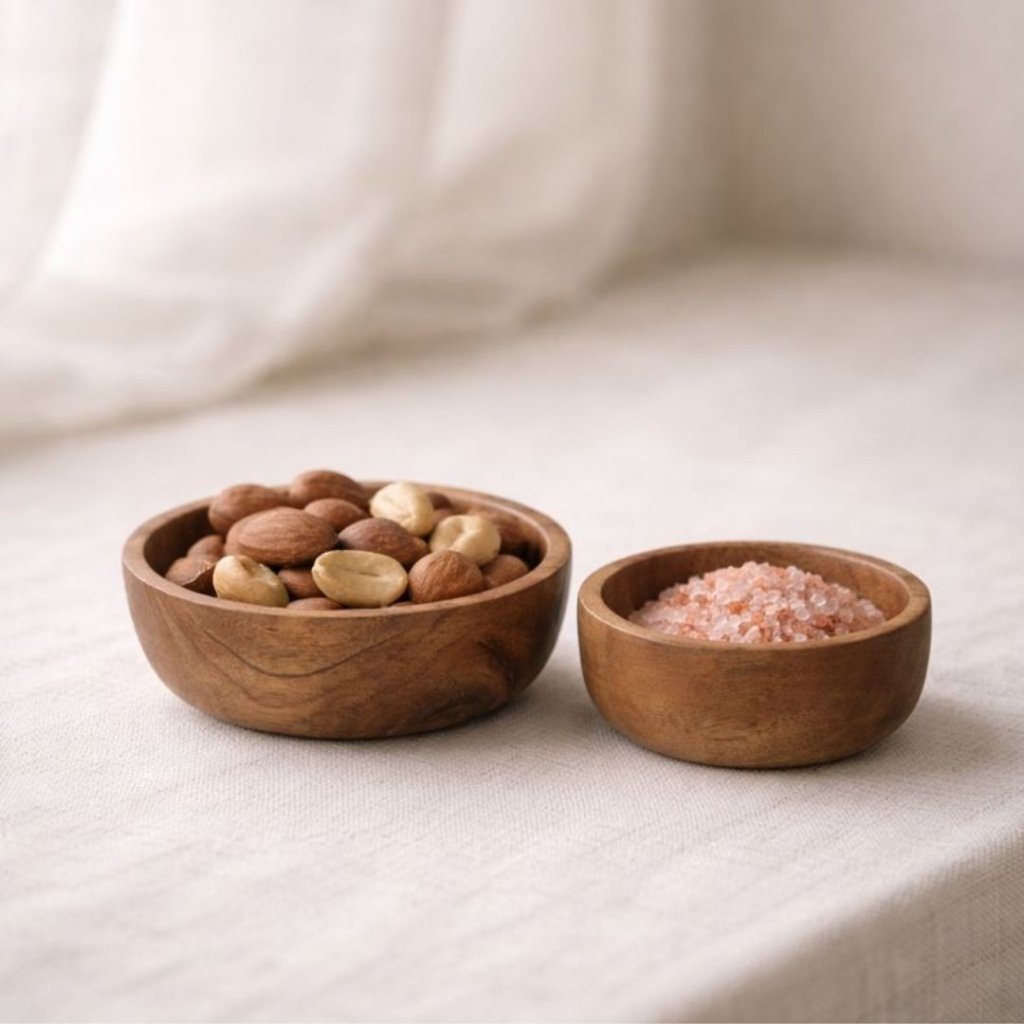 - Misky z přírodního akáciového dřeva – 10 × 3 cm a 8 × 3 cm 🌿