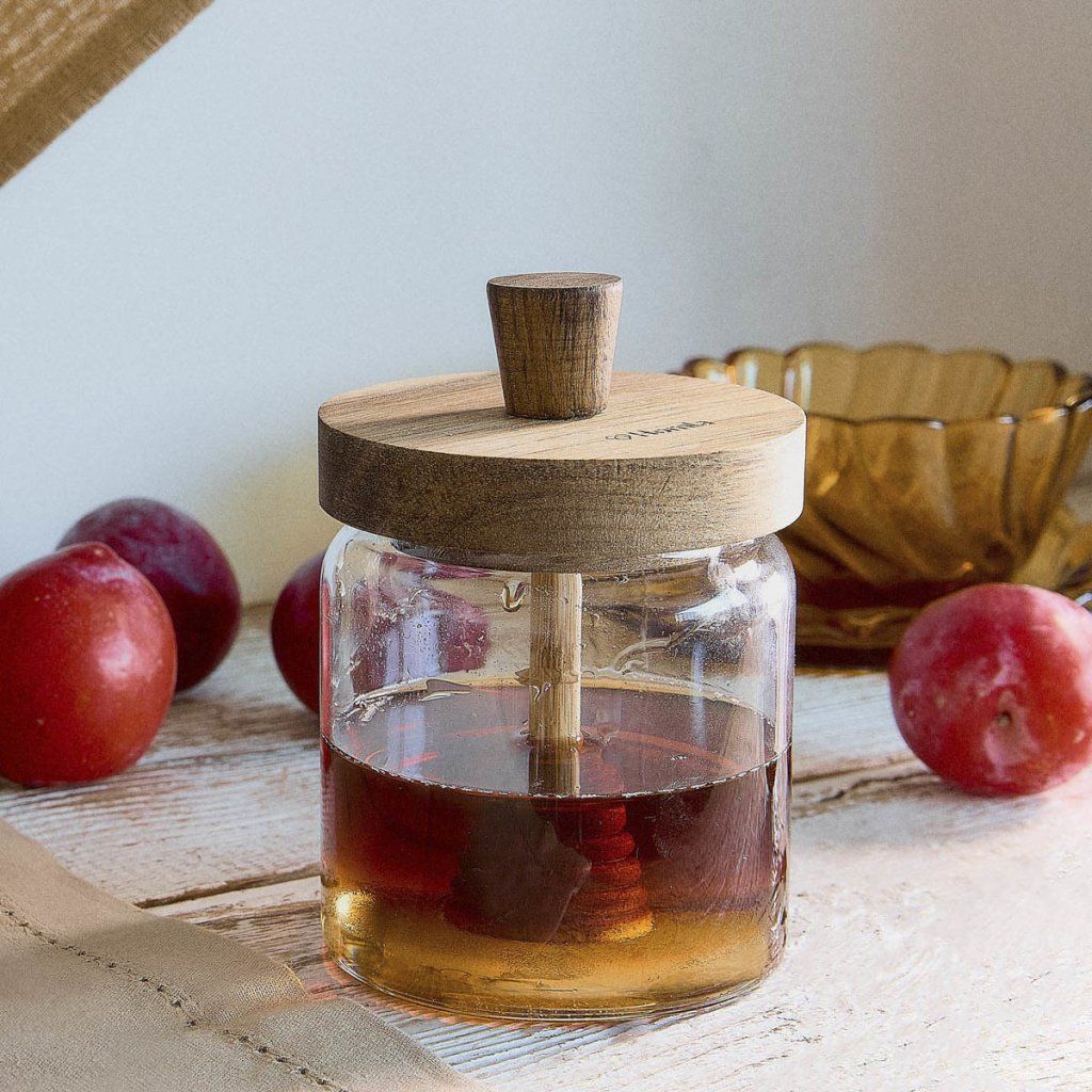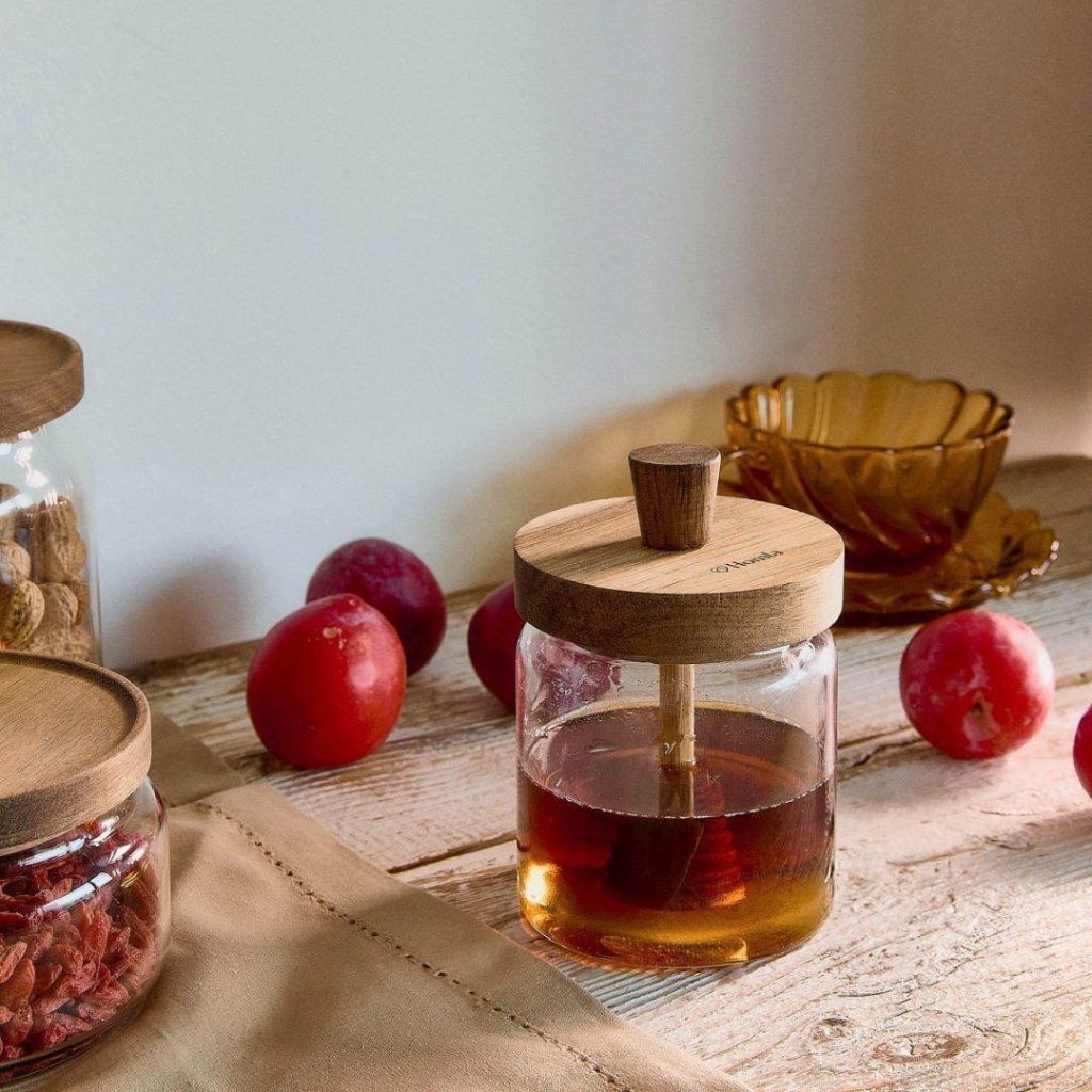 - Dodá vaší kuchyni okouzlující nádech s nádobou na med CARLOS. Tento univerzální, průhledný doplněk dodá každému interiéru lehkost a svěžest. Dřevěné víko s vestavěným dávkovačem medu nejen zaujme svou přirozenou texturou, ale také zajišťuje praktičnost a hygienu při používání. Jeho univerzální design se snadno hodí do jakéhokoli uspořádání, od moderního až po tradiční.