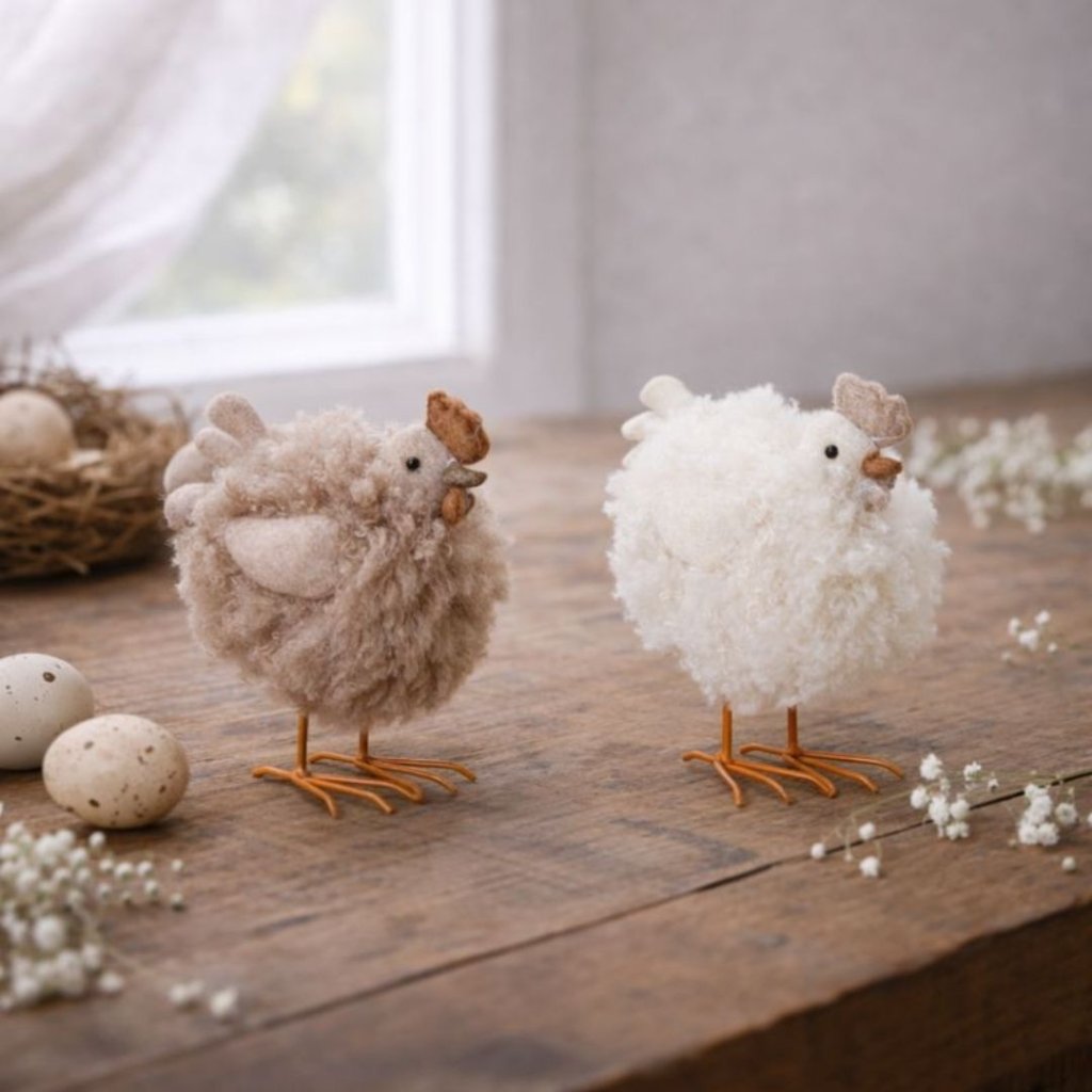 Kohout Fluffy je roztomilá dekorace s jemně nadýchaným tělíčkem, která do domova vnese klid, teplo a lehkou hravost. Působí přirozeně, měkce a útulně – přesně tak, jak to máme v deejada rádi. - Díky dvěma barevným variantám se krásně kombinuje s přírodními materiály, hodí se na jarní i celoroční dekorování a snadno si najde své místo na polici, komodě nebo svátečním stole.