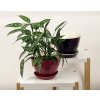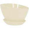Moderní plastový obal na květiny s podtáckem v krémové barvě je určený pro použití v interiéru.