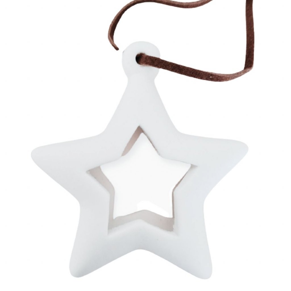 Ozdoba porcelánová hvězda s výřezem 6 cm