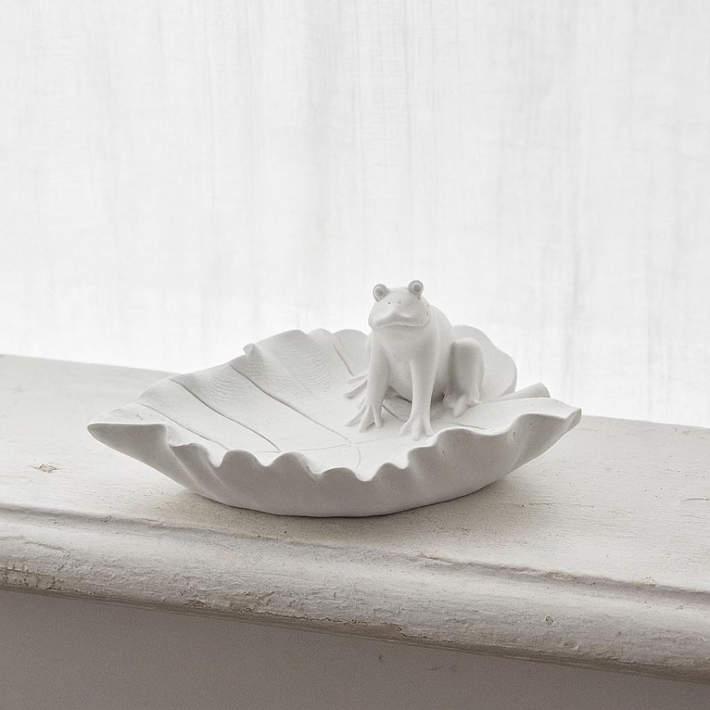 - Bílý list s žábou jako praktické pítko pro ptáčky, nebo můžete použít jako dekoraci na stůl.