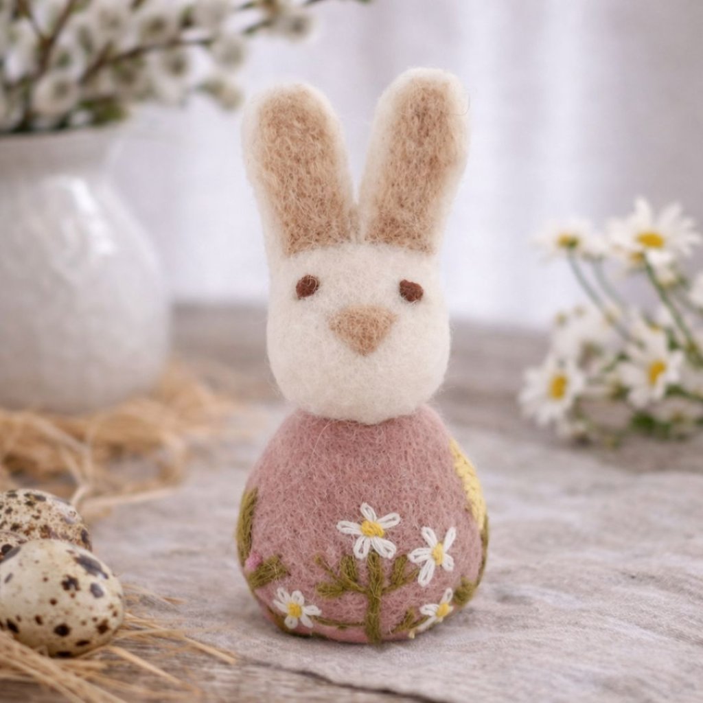 - Něžný plstěný s květinovou výšivkou je krásnou jarní dekorací, která vnese do domova radost, lehkost a kouzlo velikonočních dní.