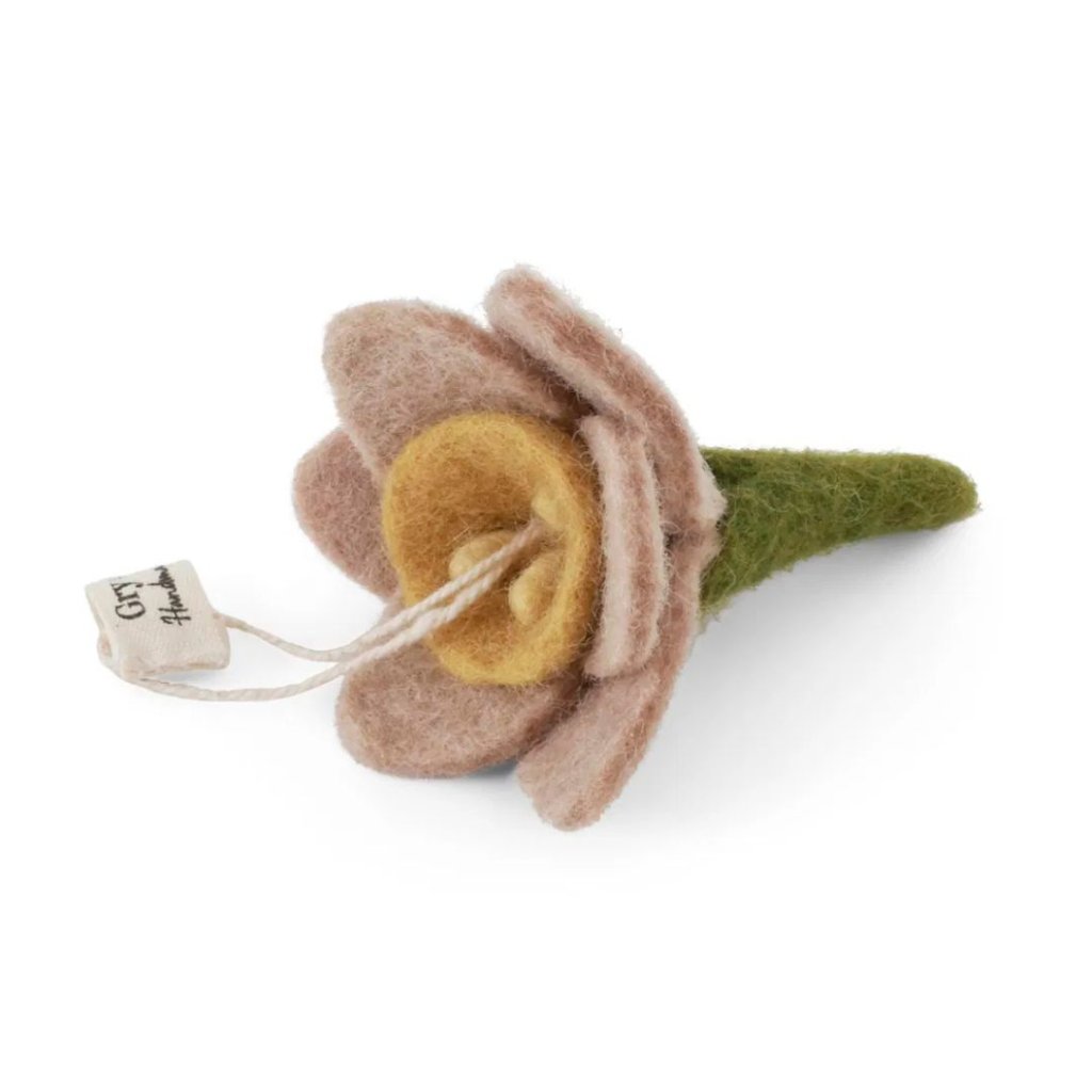 - Každý květ je pečlivě tvarovaný z jemné ovčí vlny a zdobený detailním středem, který dodává celé ozdobě realistický a zároveň pohádkový vzhled.