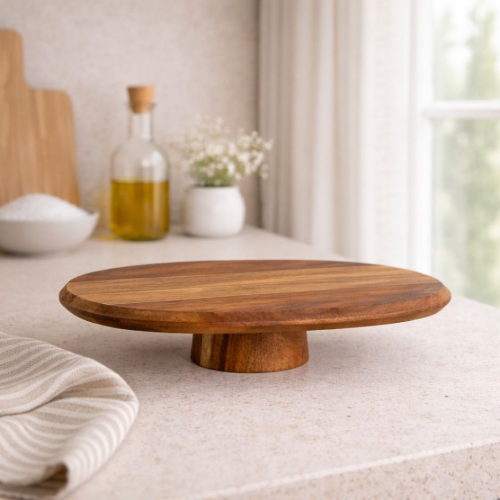 - Dřevěný akáciový podnos na noze