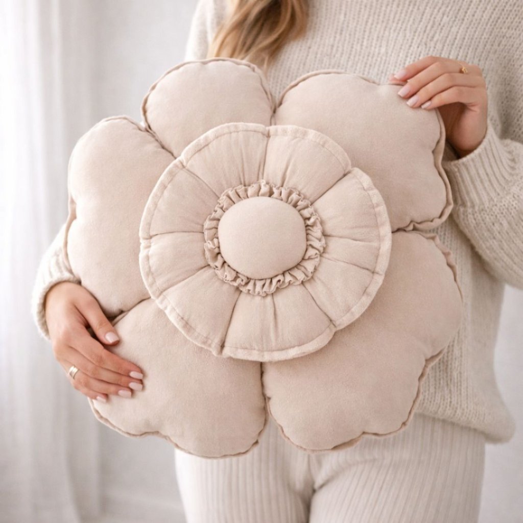 Polštář ve tvaru květu je jemným a hravým doplňkem, který okamžitě zútulní každý kout domova. Květinový tvar v kombinaci s decentním prošíváním působí romanticky a zároveň nadčasově. Světlý odstín krásně rozjasní interiér a vnese do něj lehkost i hřejivou atmosféru.