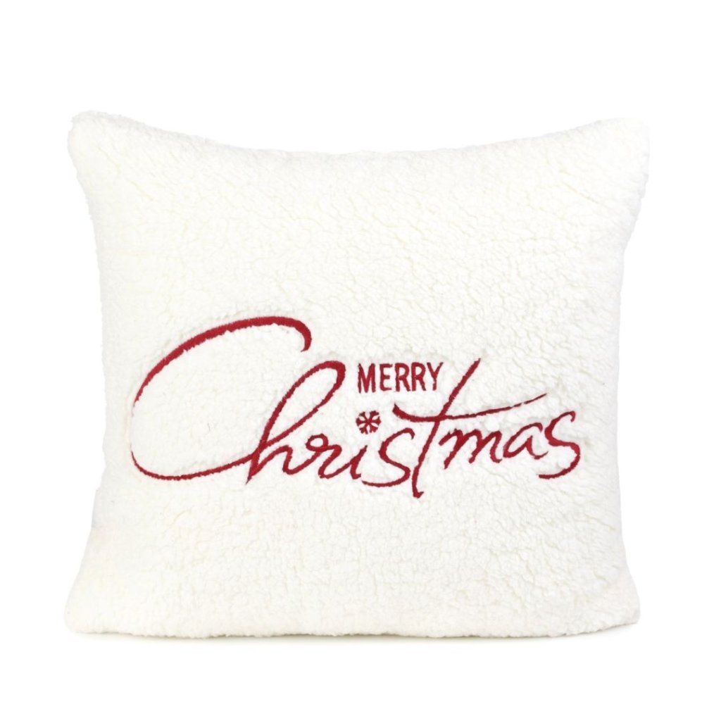 - Skvělým způsobem, jak navodit zimní atmosféru a sváteční vánoční atmosféru, je vyměnit povlaky na malých polštářích. Povlak na polštář je k tomu ideální díky svému plyšovému materiálu a velkému nápisu „Veselé Vánoce“.