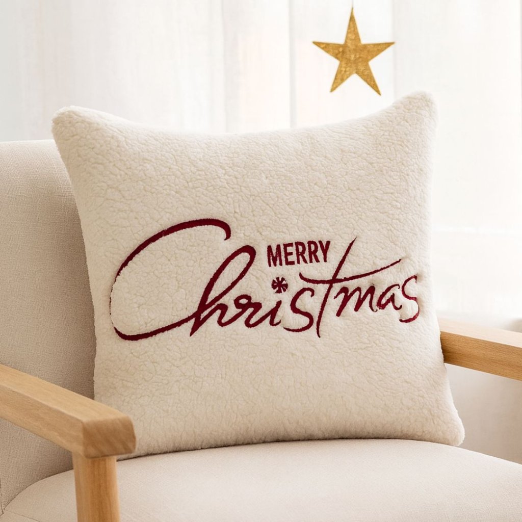 - Plyšový povlak na polštář 45 x 45 cm s nápisem Veselé Vánoce 🌲❄️