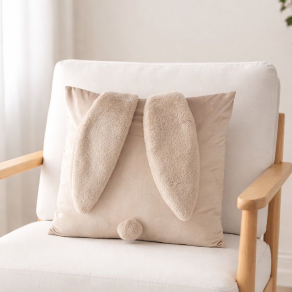 Hebký polštář s roztomilými oušky a jemnou bambulkou dodá vašemu interiéru pocit tepla, klidu a útulnosti.